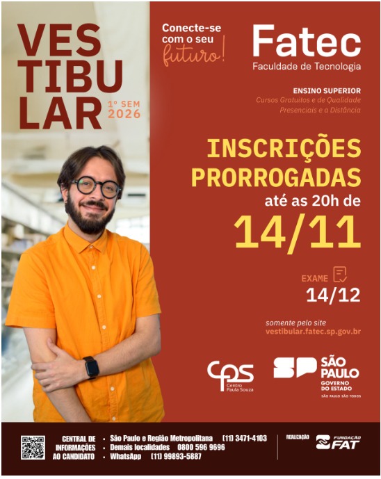 A Fatec Dom Amaury Castanho está com inscrições abertas para o processo seletivo e oferece cursos gratuitos e de alta qualidade nas áreas:✅ Análise e Desenvolvimento de Sistemas✅ Gestão Empresarial✅ Gestão de Eventos✅...