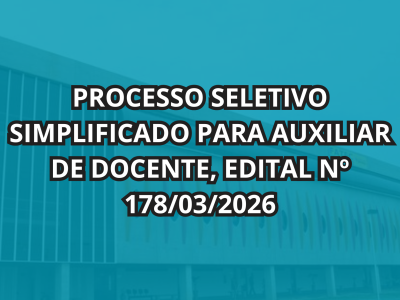 PROCESSO SELETIVO SIMPLIFICADO PARA AUXILIAR DE DOCENTE, EDITAL Nº 178/03/2026 EDITAL DE ABERTURA DE INSCRIÇÕESO Coordenador da FACULDADE DE TECNOLOGIA DOM AMAURY CASTANHO, nos termos da Deliberação CEETEPS 84, de 14/07/2022, publicada no DOE de […]