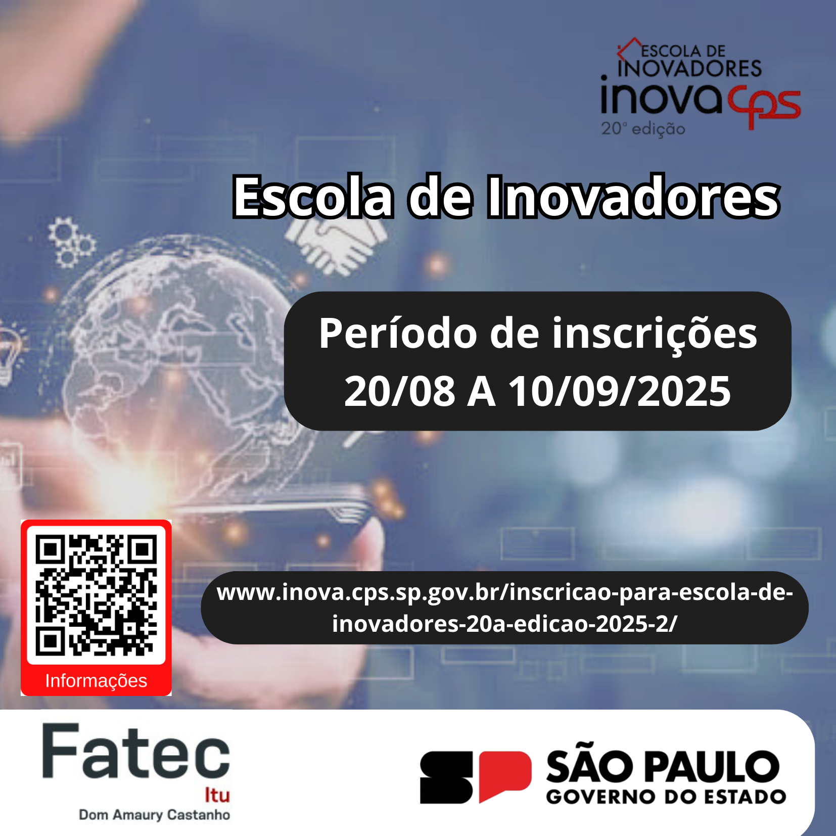 A Fatec Itu – Dom Amaury Castanho convida alunos, ex-alunos e toda a comunidade para participar da 20ª edição da Escola de Inovadores, programa promovido pelo Inova CPS.