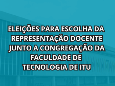 EDITAL DE CONVOCAÇÃO DAS ELEIÇÕES PARA ESCOLHA DAREPRESENTAÇÃO DOCENTE JUNTO A CONGREGAÇÃO DA FACULDADE DETECNOLOGIA DE ITU Acesse aqui. Portaria.